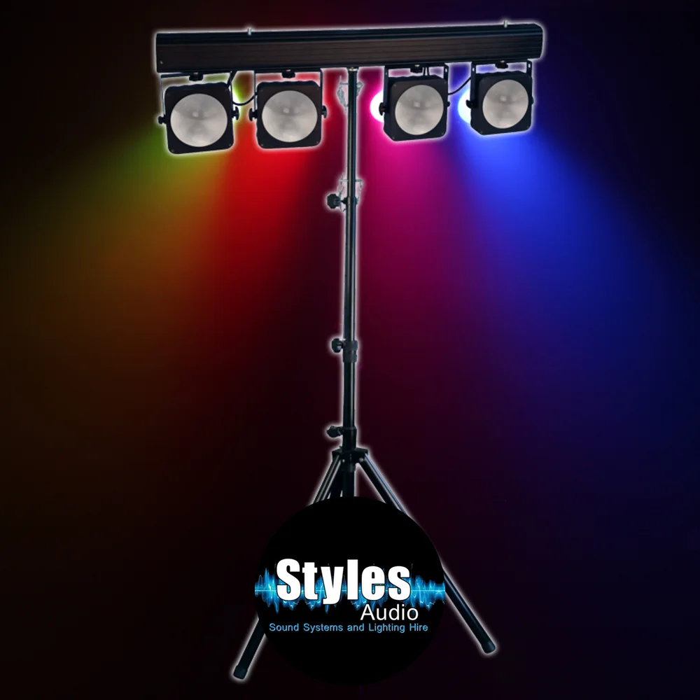 Band, Stage and Party lighting, from Styles Audio based in Exeter. This professional cob lighting bar has a whole host of fantastic built-in lighting effects. A portable system of four slim LED panels creates superb colour wash effects.