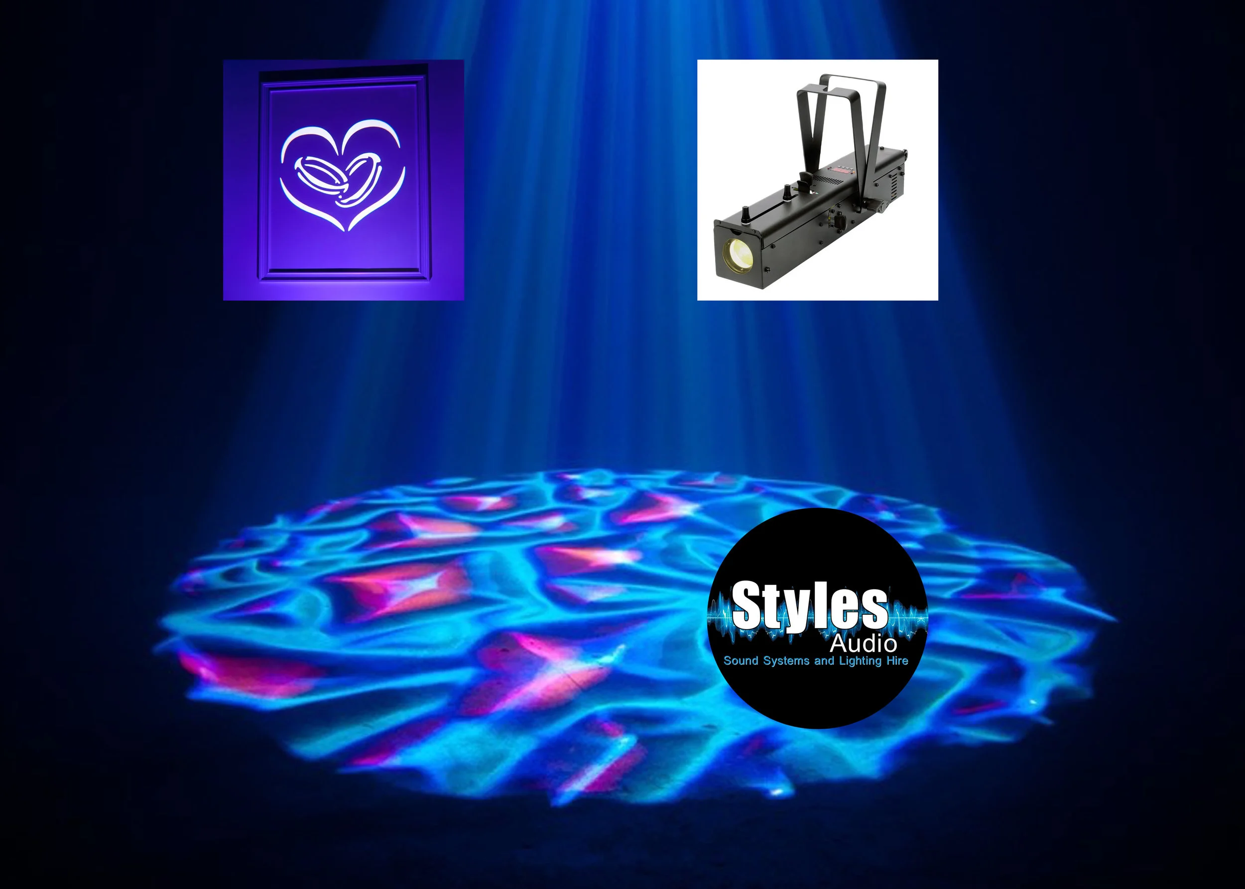 Project your name or business logo onto a wall with a Logo Image Projector It's ideal for Weddings, Parties and Promotional Events. Easily insert custom GOBOs in the fixture's GOBO slot for high quality optics for crisp, clear projection. Please contact us for custom gobo prices and info. Styles Audio based in Exeter provide a custom gobo service from your artwork from £70 which you can keep for future events.